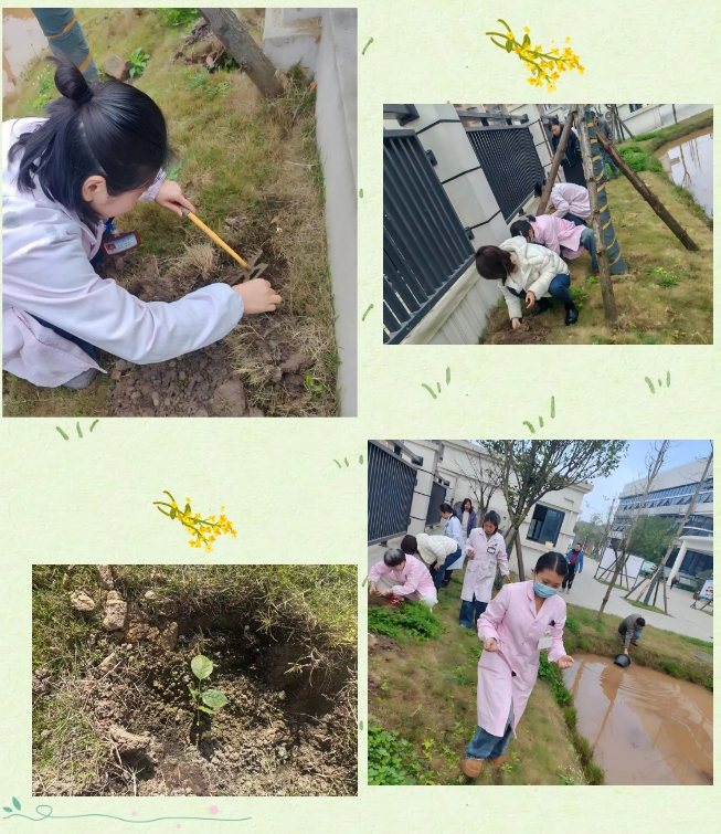 活动现场,全体人员分工明确、配合默契,依次完成挖坑、放苗、填土、浇水等环节,确保每株花苗种植质量。经过近一个半小时的耕作,100株爬藤蔷薇在院区围栏旁整齐定植、昂然挺立,为初春院区增添了浓厚绿意与生机活力。