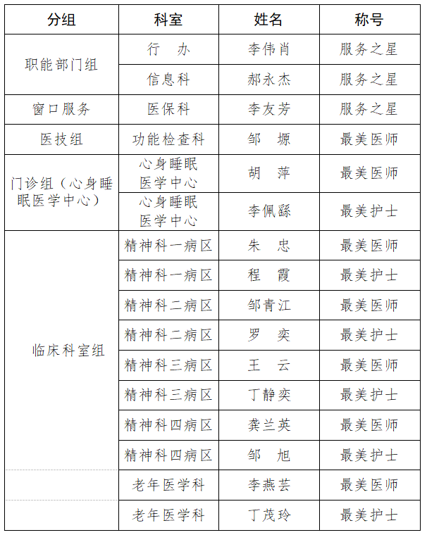 根据《荣县精神病医院评选“服务之星”活动实施方案》(荣精医发〔2024〕69号)精神,经过各组公开、公平、公正的评选,2025年第三季度“服务之星”评选工作圆满完成。