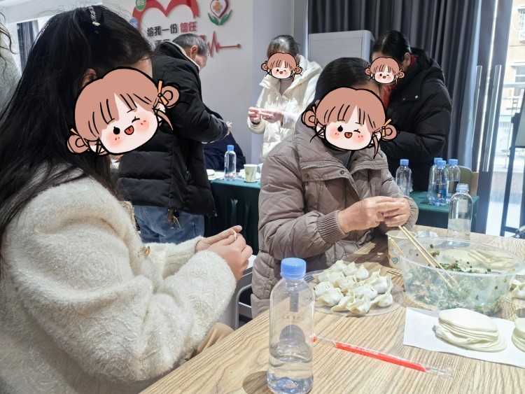 在包饺子环节,医护人员将包饺子揉面、擀皮、调馅、包裹等步骤,耐心细致地进行了讲解与演示。面对操作中的难点,工作人员进行一对一鼓励与协助,引导患者逐步掌握技巧。现场气氛融洽,患者们从最初的生疏试探,到后来主动尝试、相互交流,逐渐沉浸在动手协作的乐趣中。随着一只只形态饱满的饺子在盘中呈现,不少患者露出欣喜的笑容,纷纷表示“回家也想试试”,成就感与参与感在此刻具象化了!
